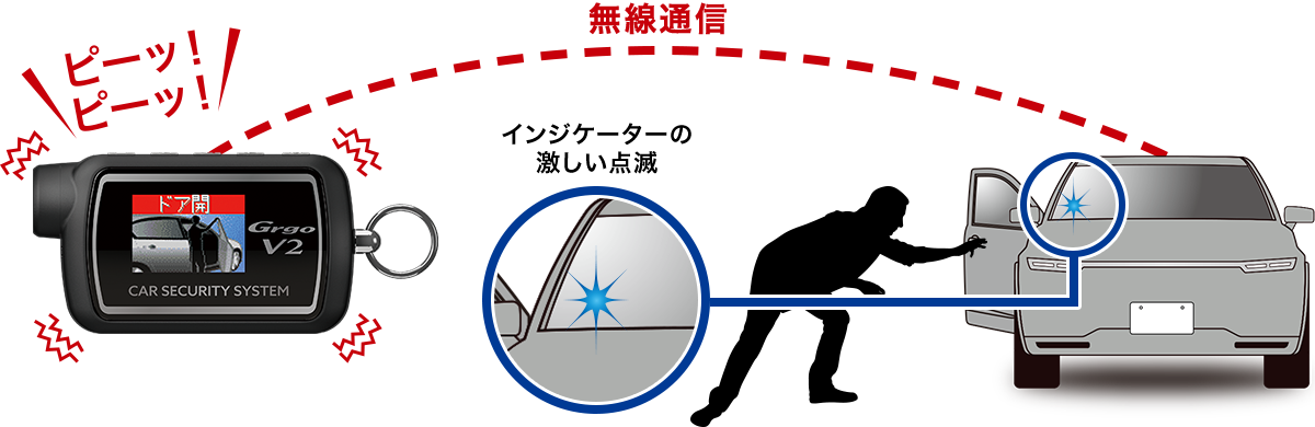 | 不正ドア開検知 | ブレーキON検知 | イグニッションON検知 | 不正ボンネット開検知 | 不正トランク開検知 |